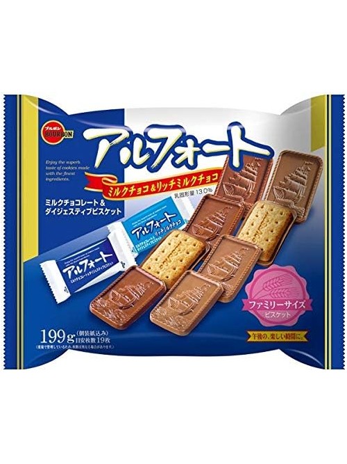 Indulge in these delicious Japanese chocolate biscuits, perfectly combining a light and golden crunchy base with a smooth, generous coating of creamy milk chocolate.