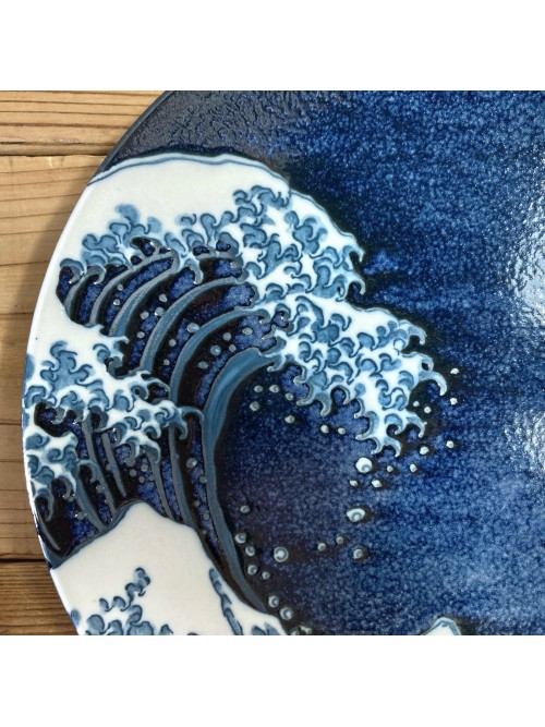 This magnificent plate features the iconic motif of Hokusai's The Great Wave off Kanagawa. Painted in blue, this dish will enhance your best dishes, or brighten up your decoration with elegance.