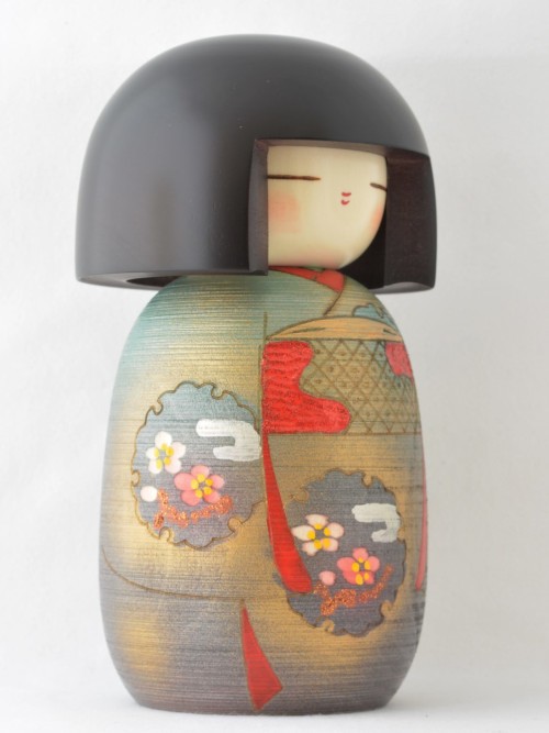 Une superbe kokeshi de taille impressionnante, tout comme son magnifique kimono.