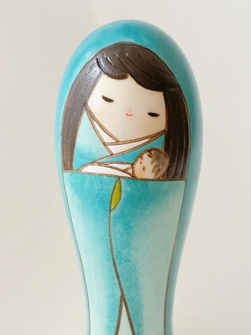 La kokeshi Vierge Marie est une poupée traditionnelle japonaise en bois de cornouiller (bois de mizuki).